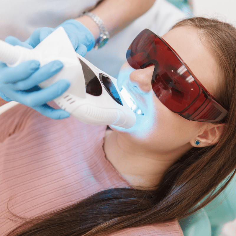 Laser teeth whitening involves the user of a laser light on the teeth. The treatment starts by using whitening agents on the teeth. The whitening gel is activated through the use of the Picasso. The results can result in several shades of improvement for your teeth. During the process, your gums will be protected and covered. Your lips and cheek will also be retracted with our special barrier system. When performed under the supervision of a dentist, this procedure is very safe and can provide high-quality results.